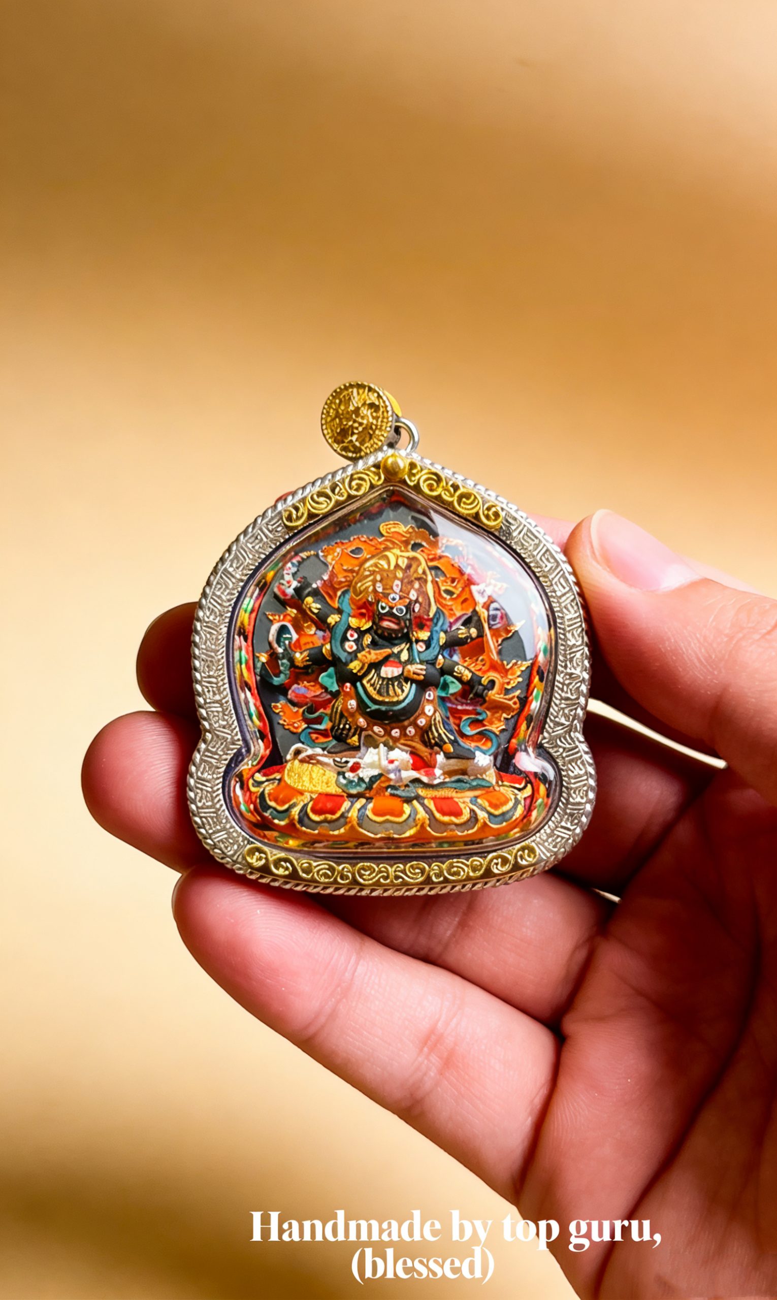 Fierce in outward form, merciful within. With six arms, he subdues negative forces and cuts off ignorance, obstacles, troublemakers, and harmful energy.